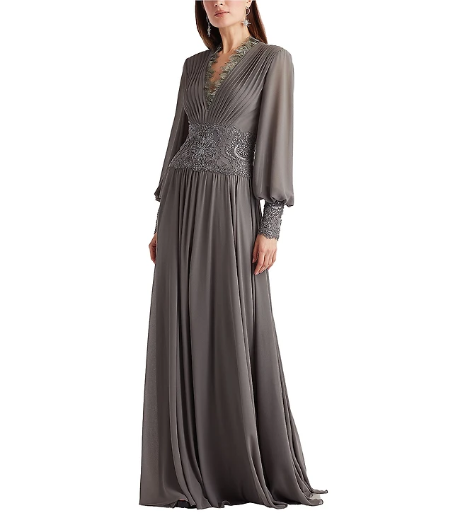 Vince Camuto Chiffon V-Neck 3/4 Puff Sleeve Blouson Maxi Dress