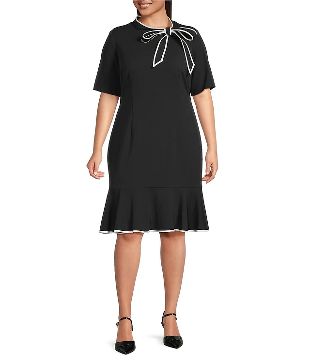 Kensie Plus Size Short Sleeve A-Line Woven Midi Dress