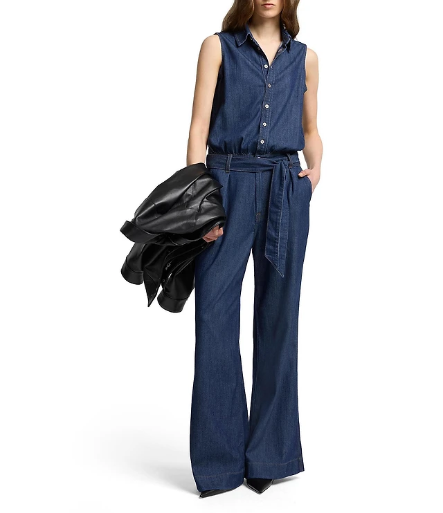 DKNY by Donna Karan Heavy Twill Notch Collar Short Sleeve Jumpsuit
