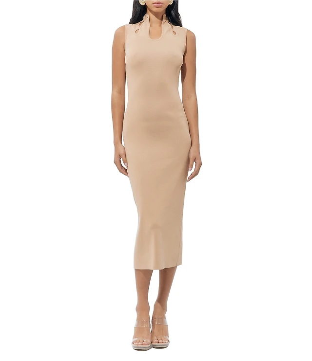 1. STATE Round Neck Sleeveless Midi Sweater Dress