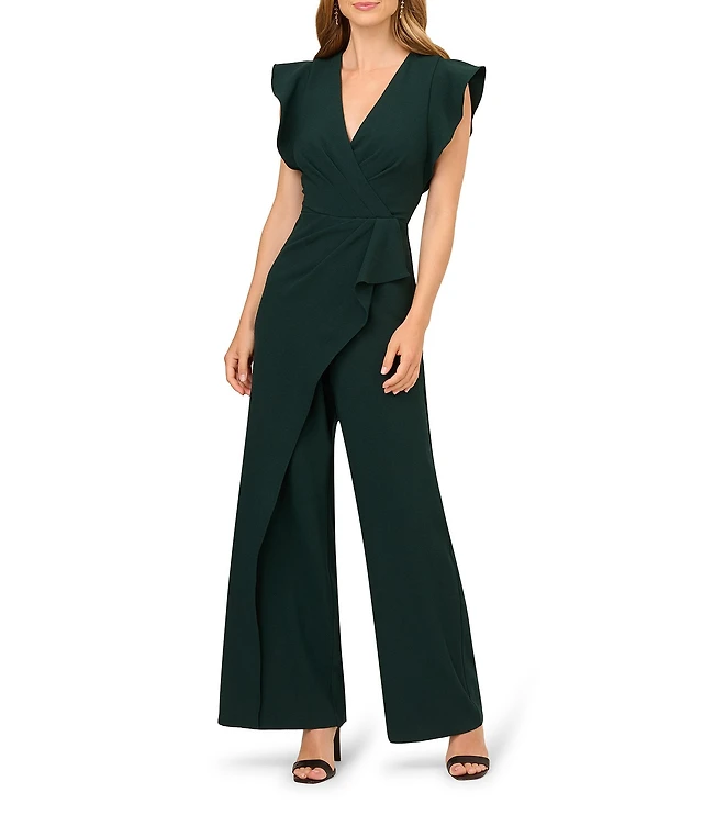 Adrianna Papell Crepe Flutter Cap Sleeve Overlay Jumpsuit