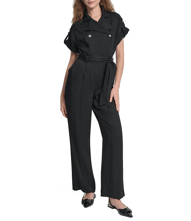 DKNY by Donna Karan Cap Sleeve Ankle Length Wide Leg Jumpsuit