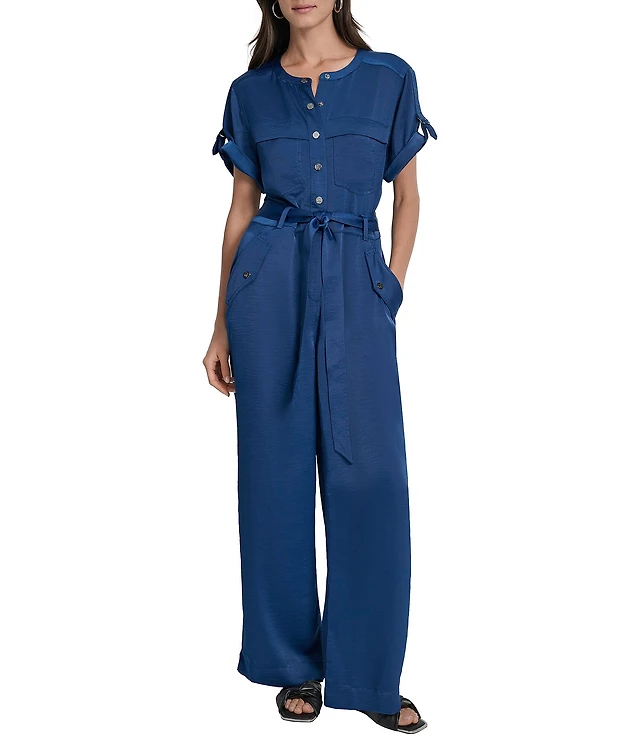 DKNY by Donna Karan Utility Glaze Dressing Short Sleeve Jumpsuit