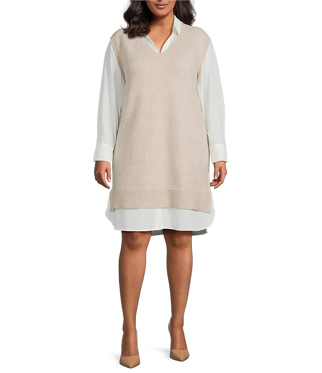 Skies Are Blue Plus Size Long Sleeve Layered Sweater Dress