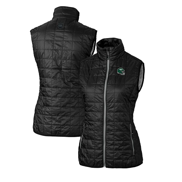 Women's Cutter & Buck Black New York Jets Helmet Logo Rainier PrimaLoft Eco Insulated Full-Zip Puffer Vest