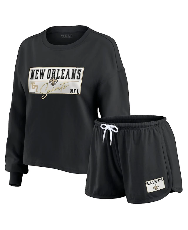 Wear by Erin Andrews Women's Brown Cleveland Browns Heavy Rugby Jersey Long Sleeve T-Shirt and Shorts Lounge Set