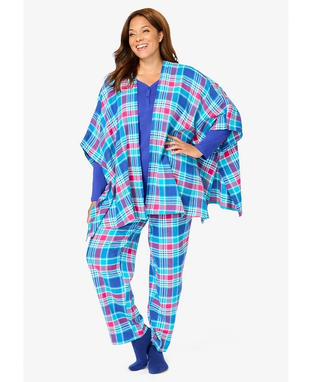 Lands' End Plus Brushed Cozy Waffle Jersey 3 Piece Pajama Set - Tank Top Pant and Robe