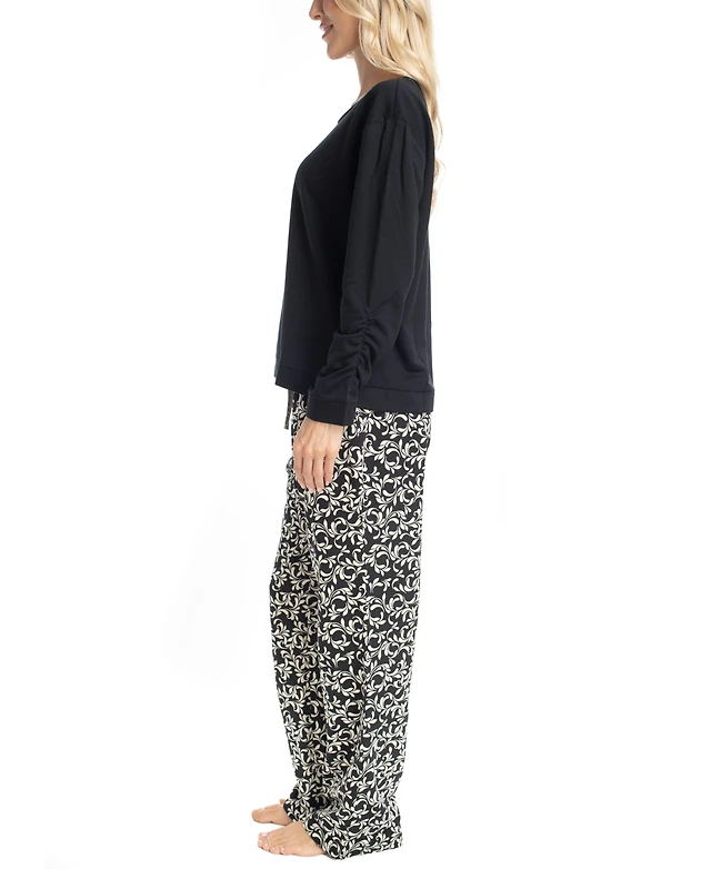 Ruffle Sleeve Boxy Top Ruffle Pull On Pants Pajama Set