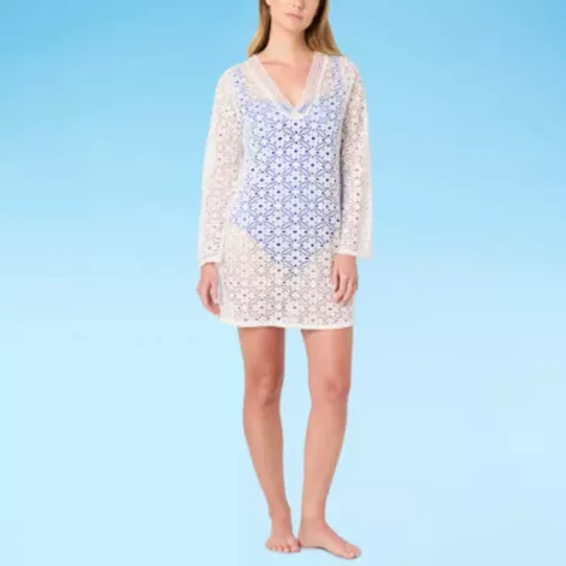 Stella Parker Womens Medallion Crochet Dress Swimsuit Cover-Up
