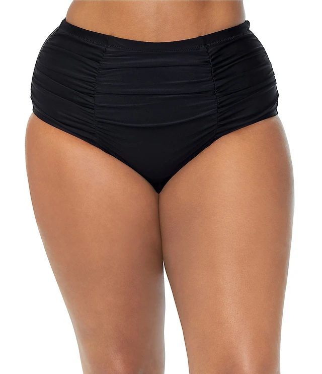 Raisins Curve Plus Size Malo Solid High Waist Shirred Swim Bottom