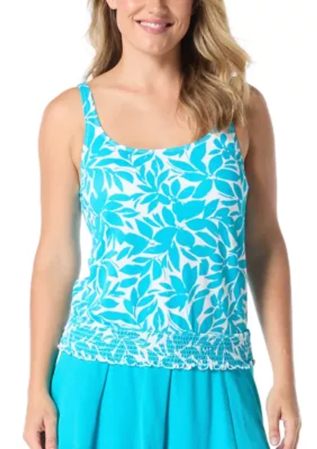 Key West Piqué Smocked Waist Blouson Tankini Swim Top