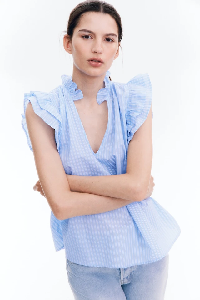 Ruffle-Trimmed Poplin Blouse