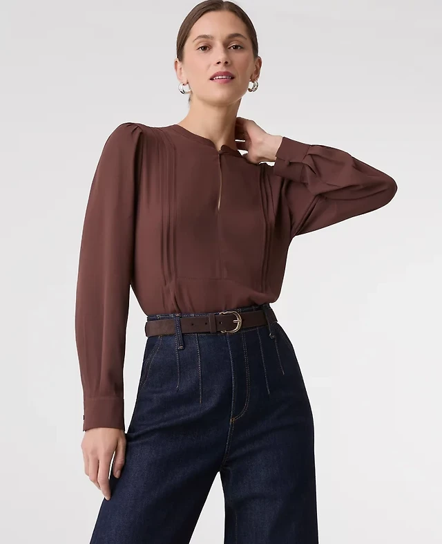 Ann Taylor Petite Mixed Media Pleat Front Top Sunrise Lavender Women's