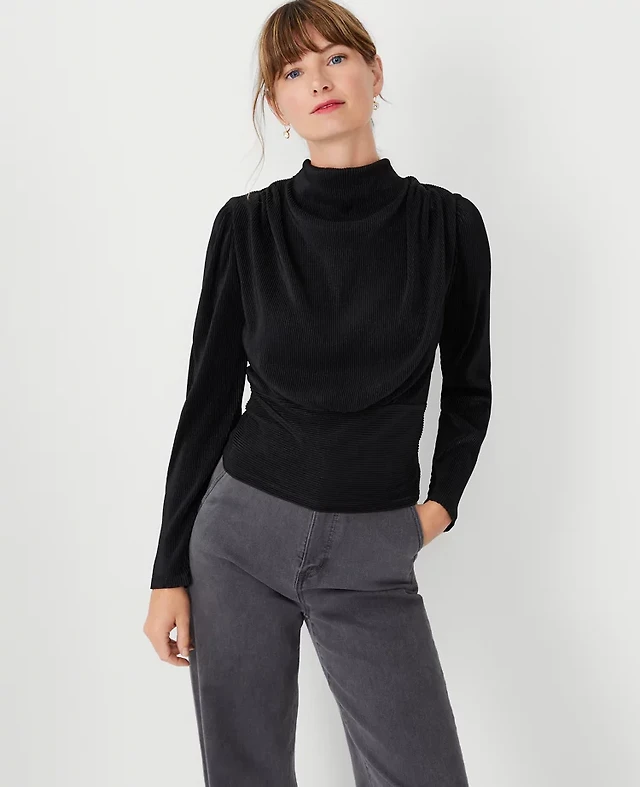 Ann Taylor Metallic Draped Cowl Neck Top Size Large Black Women's