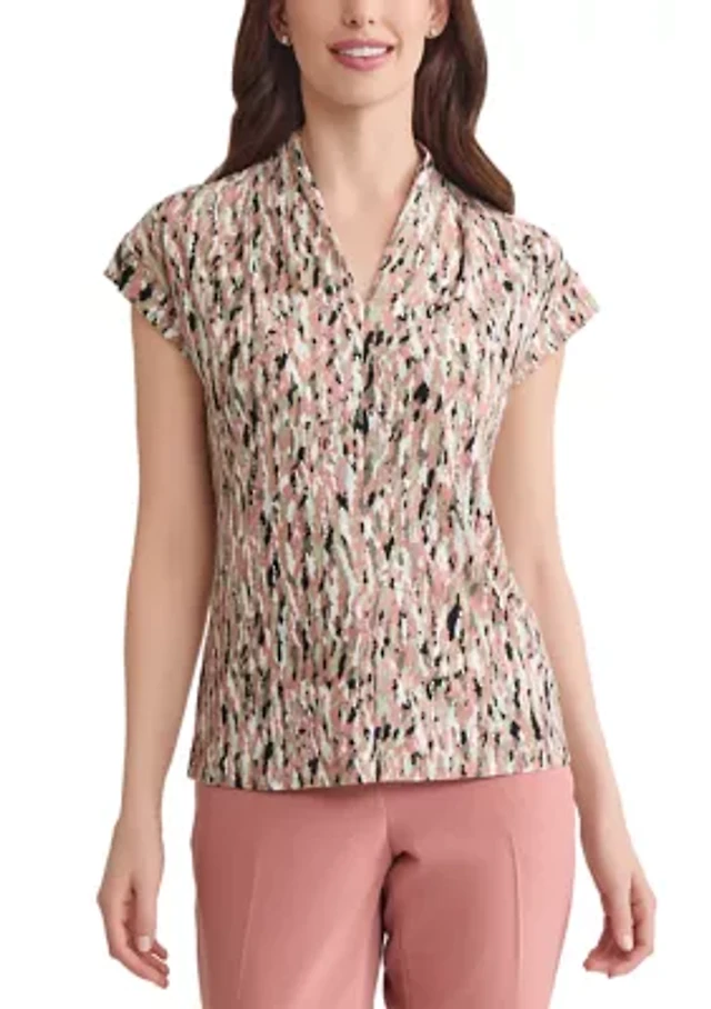 Women's Solid Mixed Media Ruffle Top
