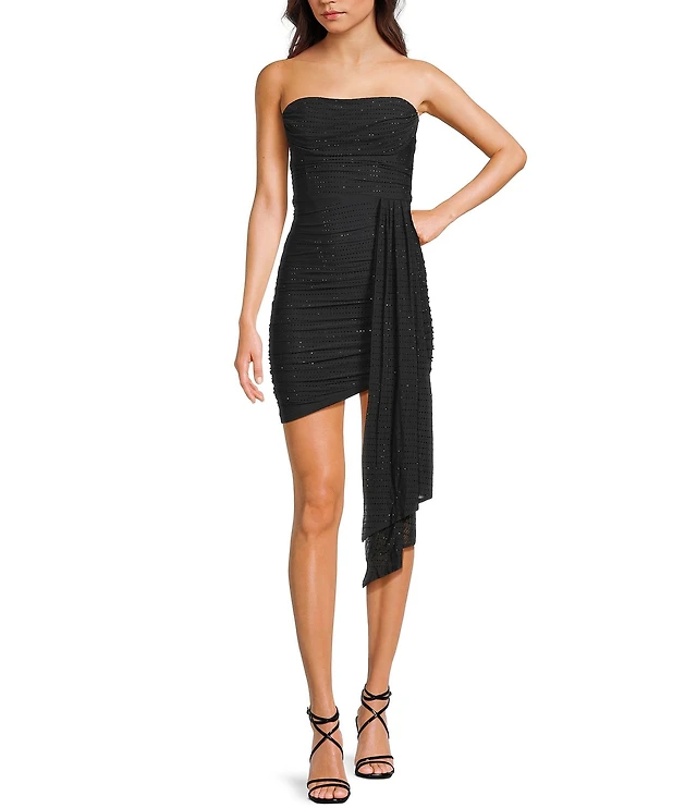 Terani Couture Metallic Jacquard Sheath Peplum One Shoulder Neckline Dress