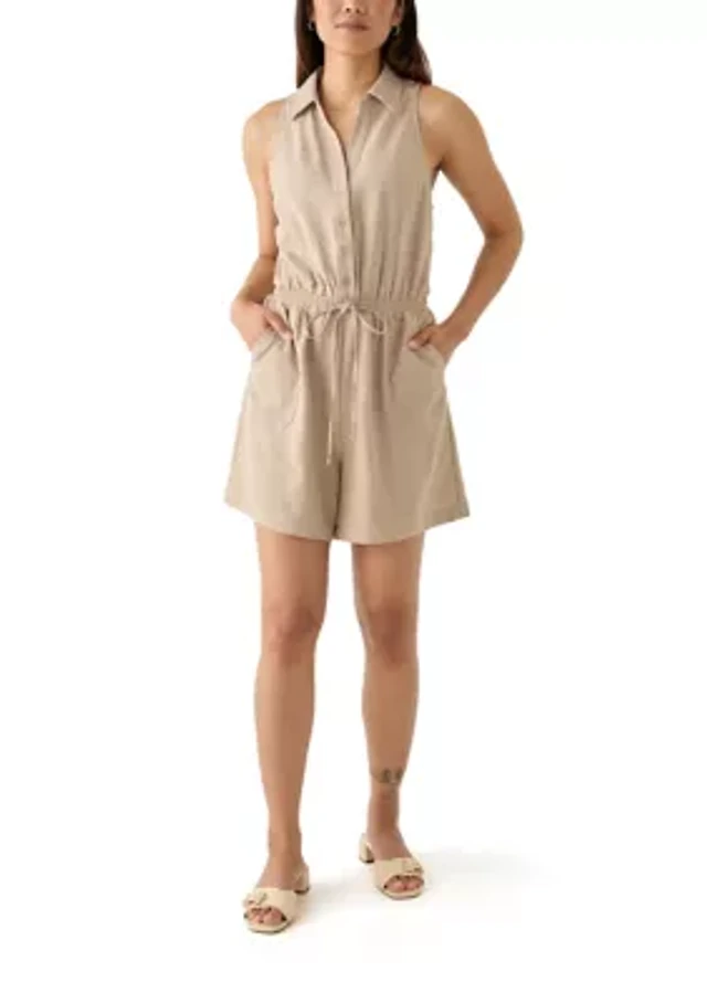 Women's Tie-Front Cotton-Blend Crew Neck Dress
