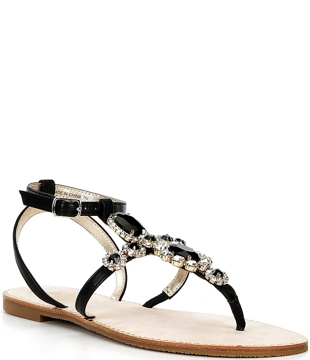 Jack Rogers Jacks Metallic Leather Jewel Ornamented Flat Thong Sandals