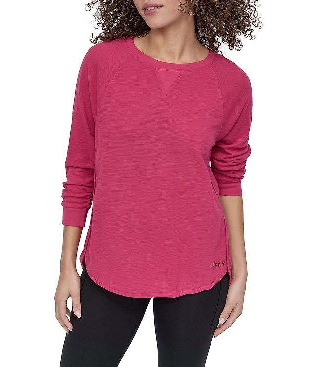 DKNY Sport by Donna Karan Mini Slub Waffle Knit Crew Neck 3/4 Ruched Sleeve Tee