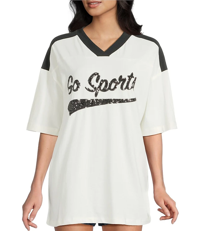 Miss Chievous V-Neck Go Sports Short Sleeve Varsity T-Shirt