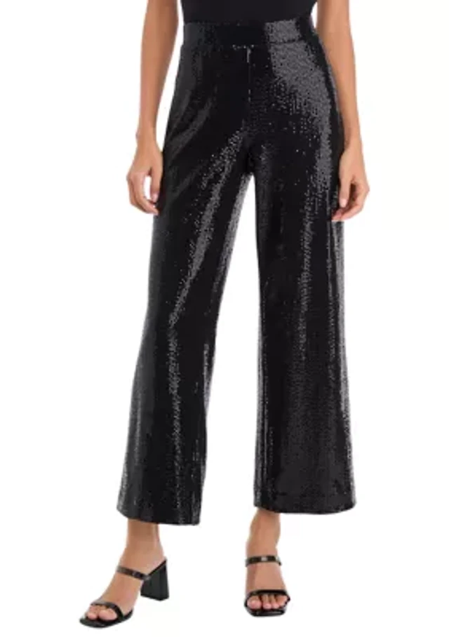 Petite Pull On Hollywood Waist Wide Leg Sequin Mesh Pants
