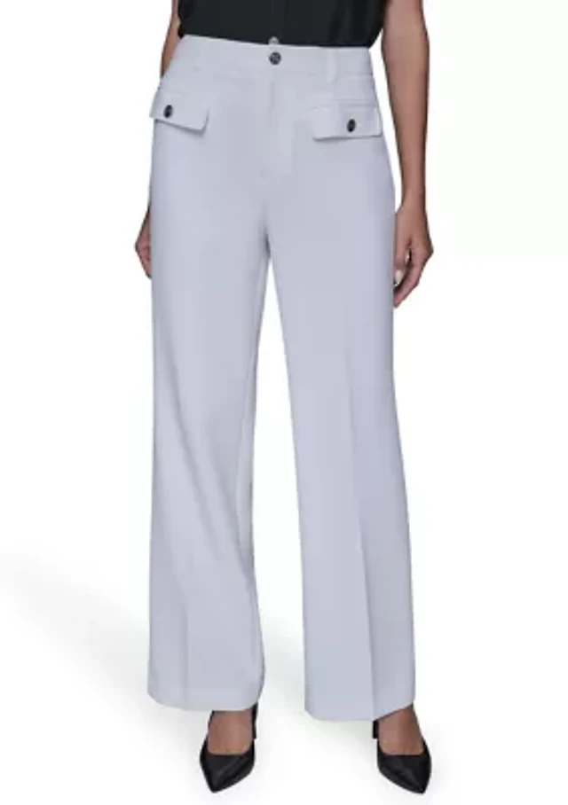 Women's Asymmetrical Wrap Flat Front Wide Leg Trousers