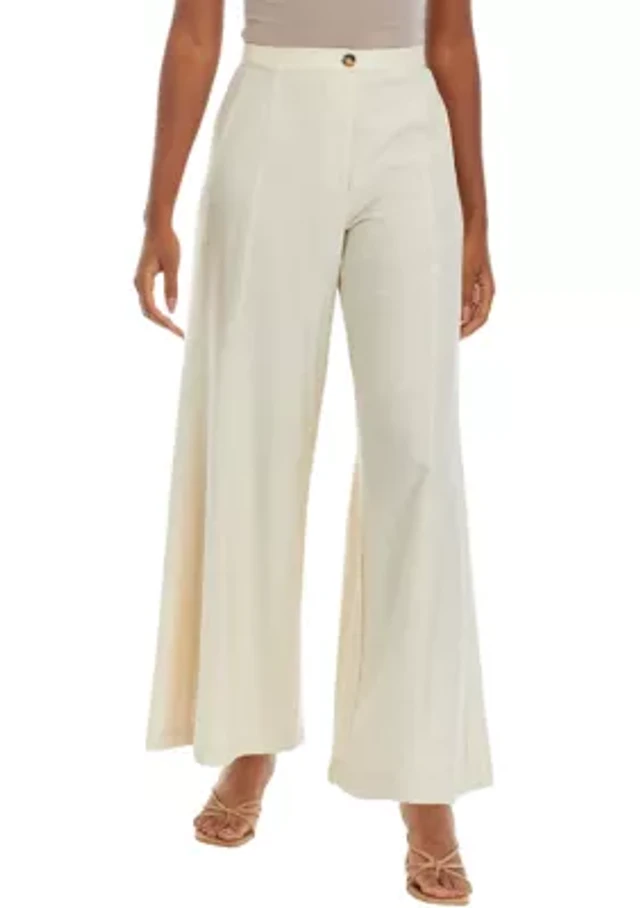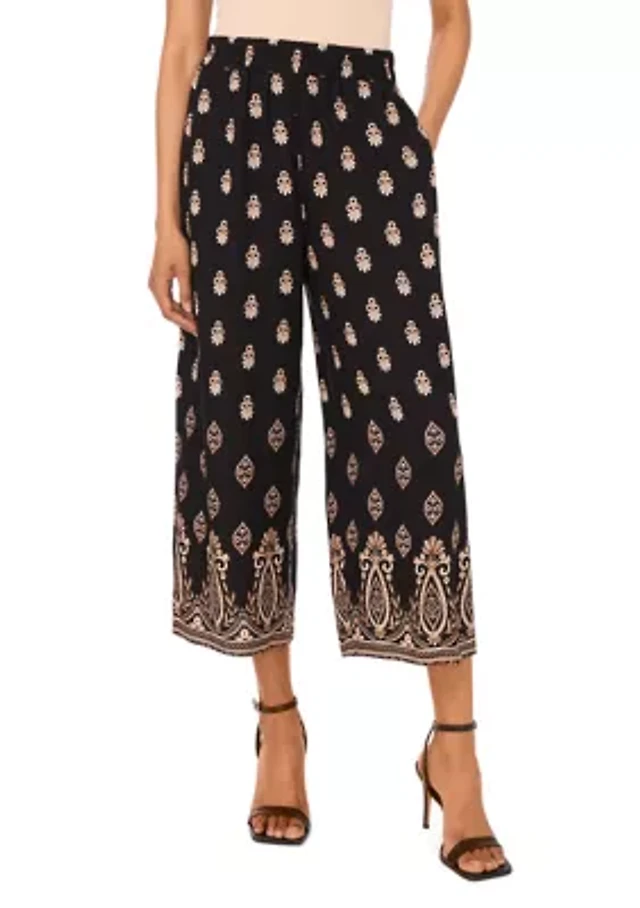 Petite Linen Like Pull On Wide Leg Cropped Pants