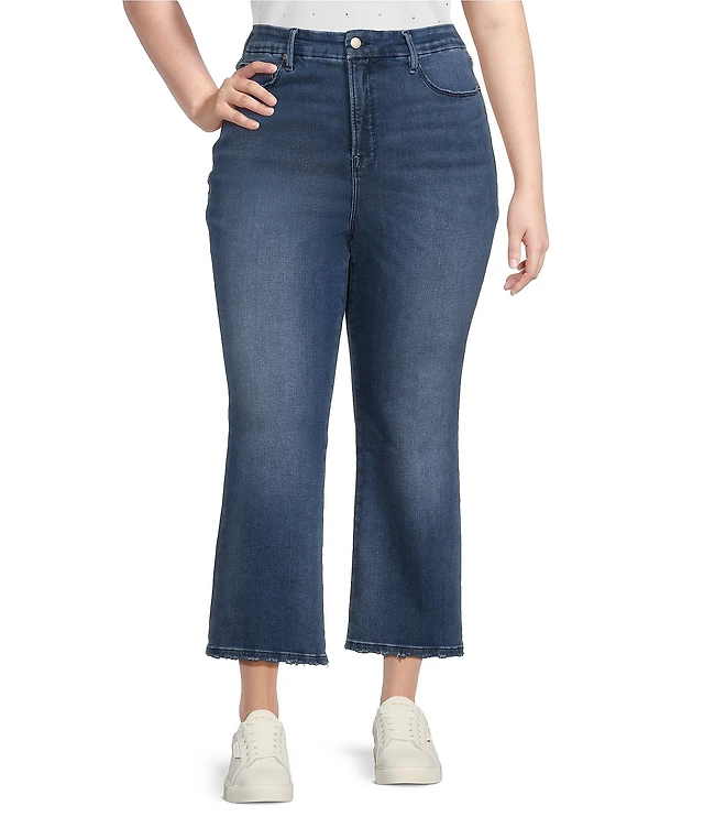 Prosperity Denim Mid Rise Straight Leg Crochet Hem Cropped Jeans