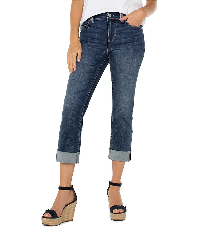 KUT from the Kloth Amy Stretch Denim High Rise Straight Leg Double Button Cropped Jeans