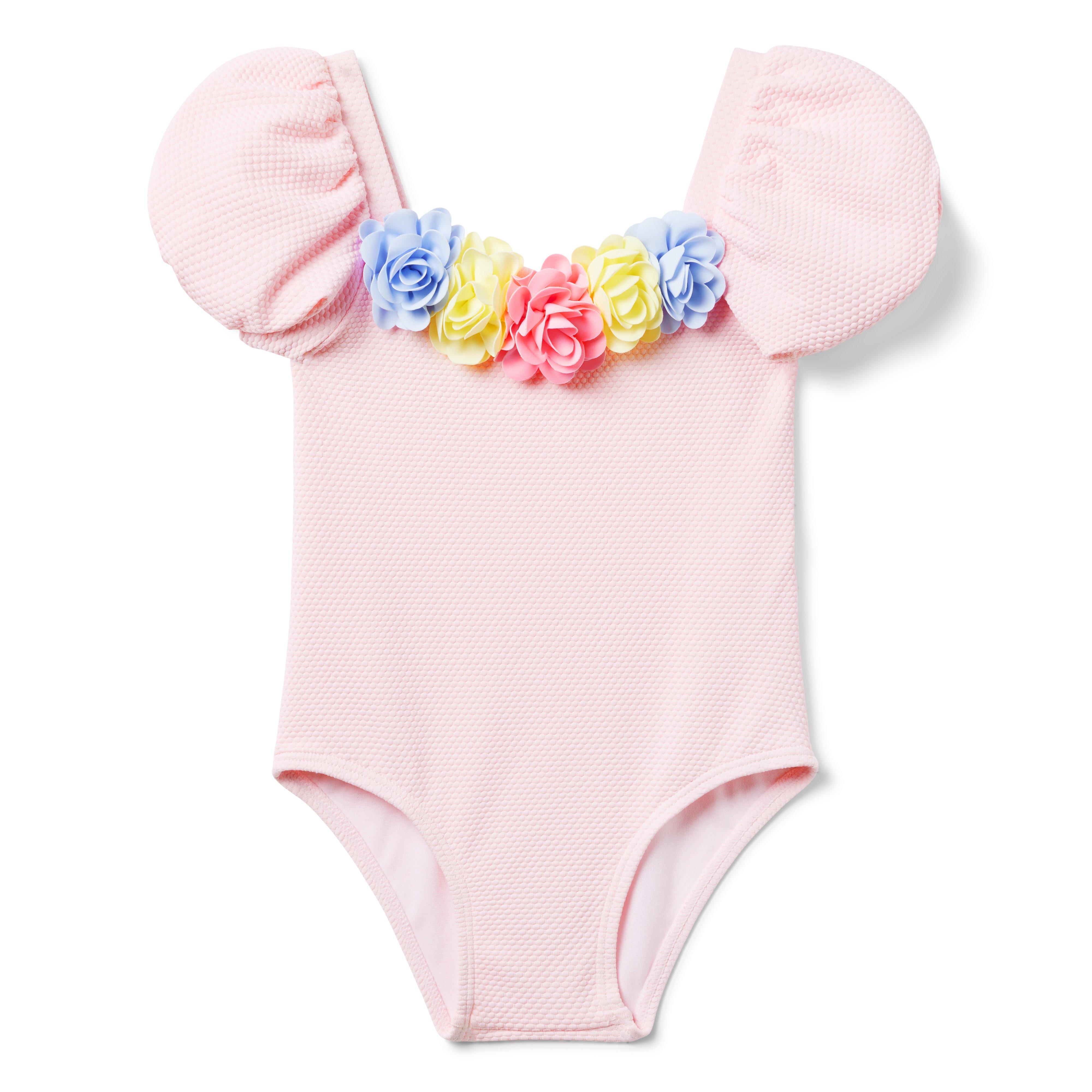 Baby Girls Tropical Eyelet Trim One Piece Swimsuit