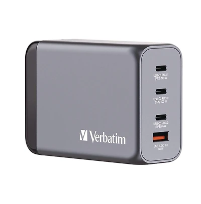 Verbatim 32205 240 Watts 4-Port GaN Wall Charger - Black/Gray