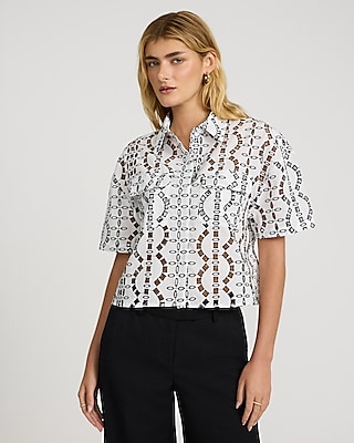 Eyelet Short Sleeve Cropped Shirt