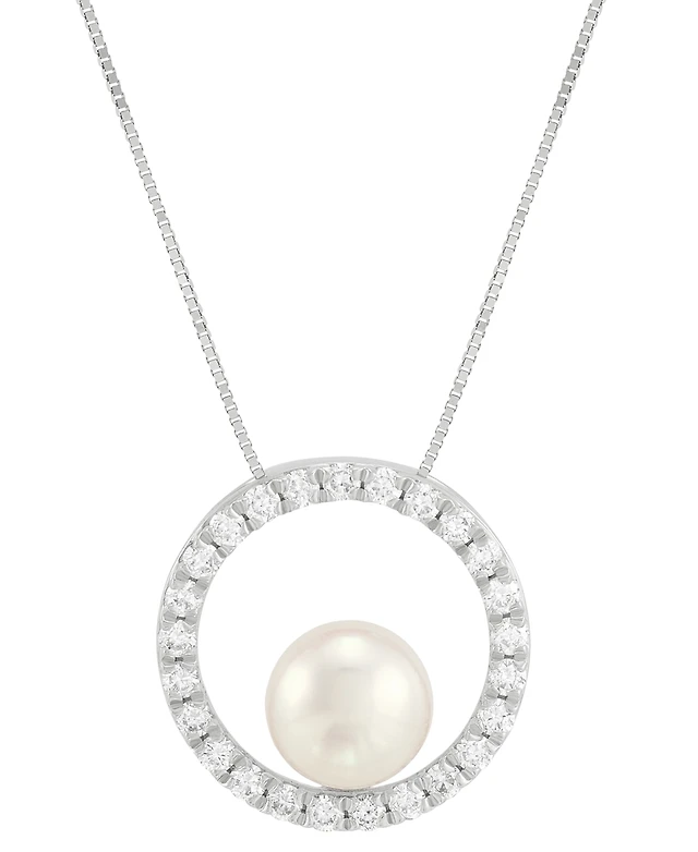Honora Cultured Freshwater Pearl (9mm) and Diamond Accent Pendant 18" Necklace 14k Gold