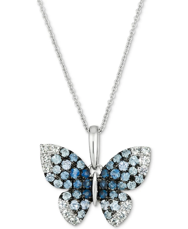Le Vian Denim Ombre (7/8 ct. t.w.) & White Sapphire (1/3 ct. t.w.) Butterfly Pendant Necklace in 14k White Gold, 18" + 2" extender