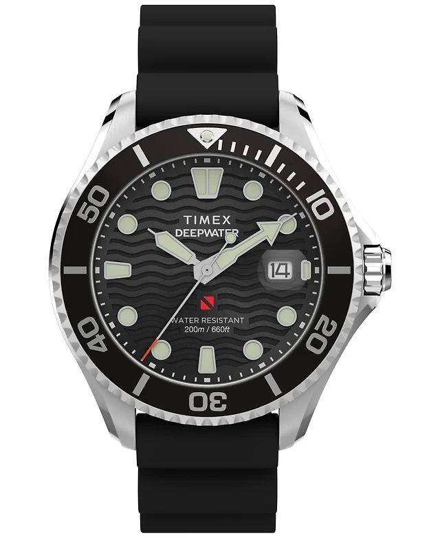 Timex Men's Quartz Analog Black Rubber Watch, 44mm