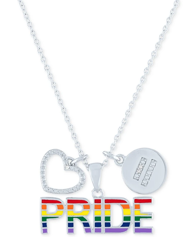 Diamond Heart Necklace 1/6 ct tw Round & Baguette Sterling Silver 18"