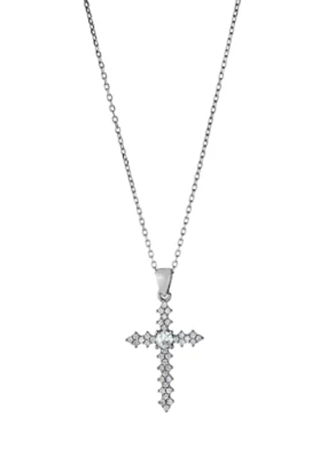 Diamond Curve Cross Necklace 1/6 ct tw Sterling Silver
