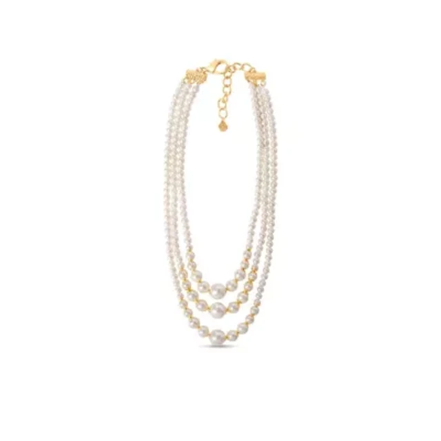 Imitation Pearl Layered Collar Necklace, 16" + 2" extender