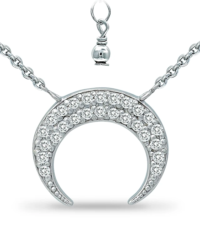 Cubic Zirconia Crescent Moon Pendant Necklace Sterling Silver, 16" + 2" extender