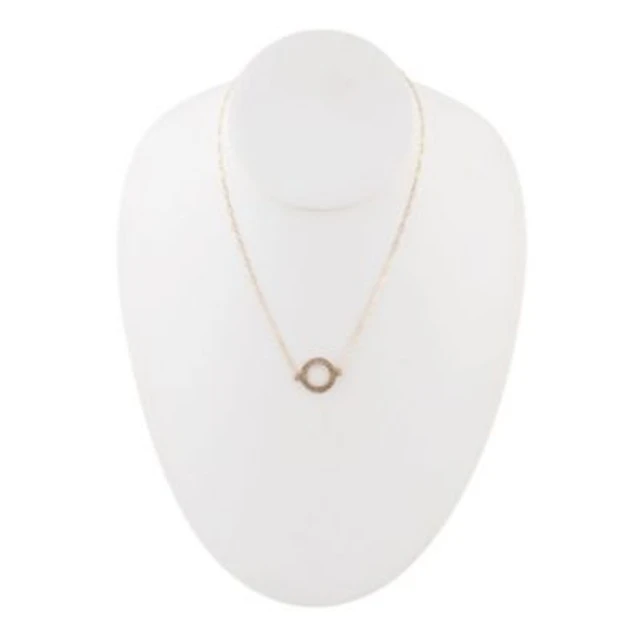 2028 Gold Tone Ivory Color Floral Decal Crystal Accent Pendant 16" Adjustable Necklace