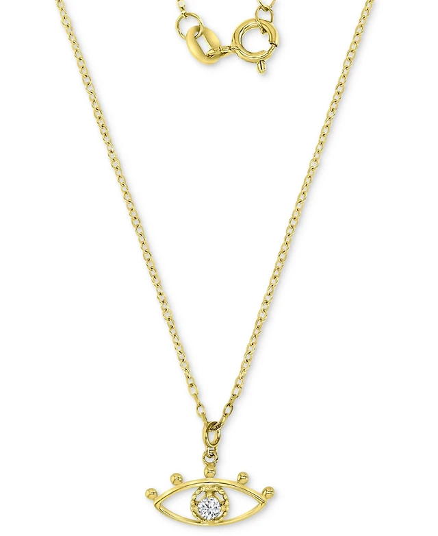 Cubic Zirconia & Enamel Evil Eye Halo Pendant Necklace in 14k Gold-Plated Sterling Silver, 16" + 1" extender