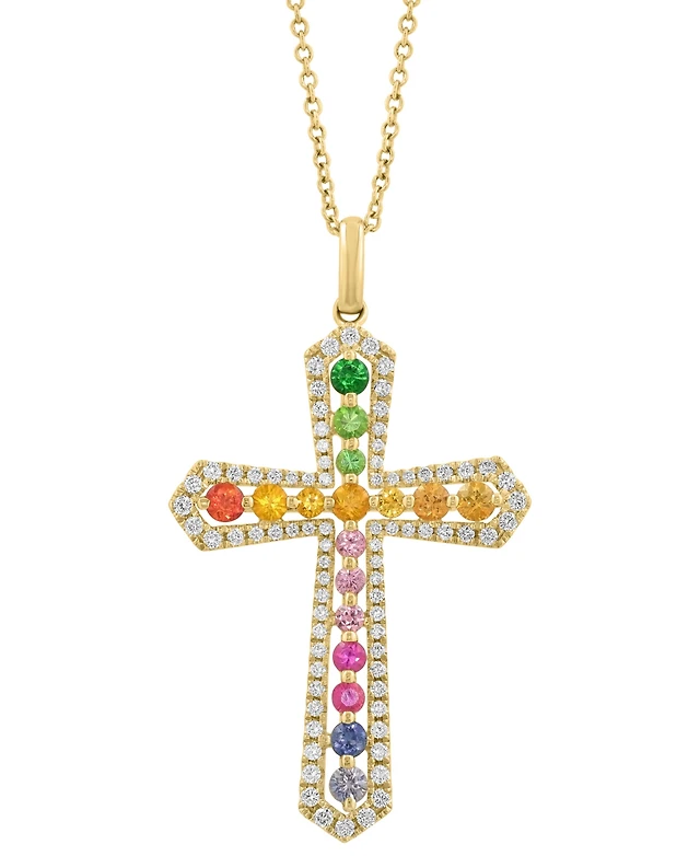 Le Vian Peach Morganite (5/8 ct. t.w.), Passion Fruit Tourmaline (1/6 ct. t.w.), & Nude Diamond (1/4 ct. t.w.) Halo Adjustable 20" Pendant Necklace in