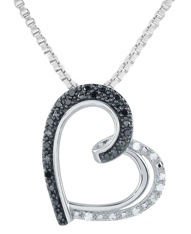 Disney Treasures The Nightmare Before Christmas Black & White Diamond Heart Necklace 1/6 ct tw 10K Yellow Gold 17"