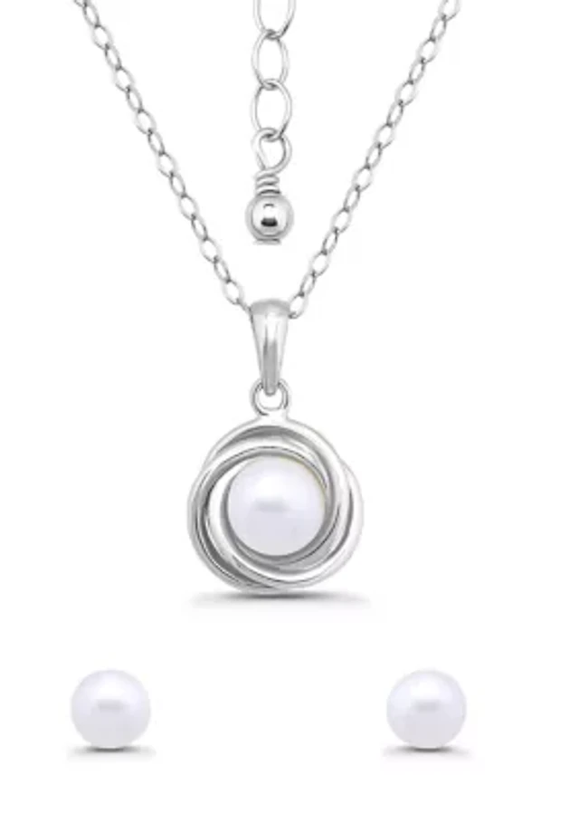 Sterling Silver Freshwater Pearl Necklace and Earring Set