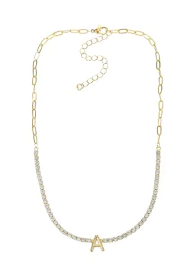 Rachel Glauber Two-Toned with Clear Cubic Zirconia Station Necklace