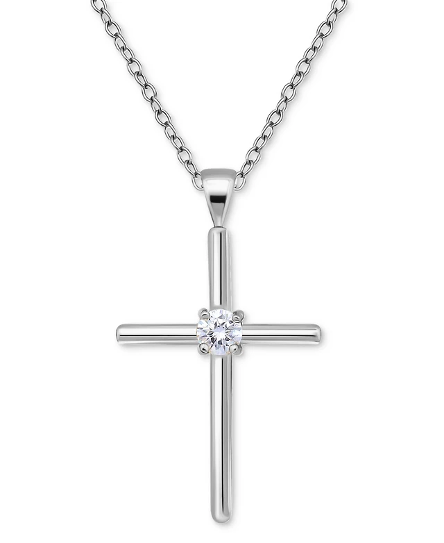 Giani Bernini Cubic Zirconia Cross Pendant Necklace (3/8 ct. t.w.) in Sterling Silver, 16" + 2" extender