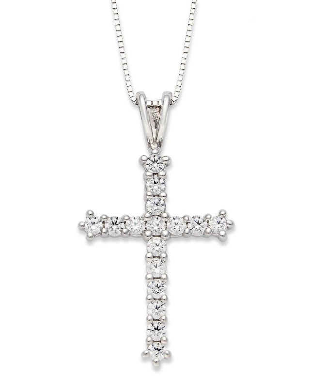 Diamond Baguette Cross Pendant Necklace in 14k White Gold (1/2 ct. t.w.)