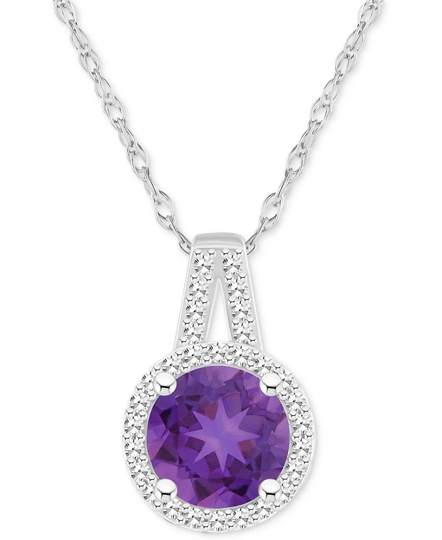 10K White Gold Sapphire and 1/8 ct. t.w. Diamond Pendant Necklace