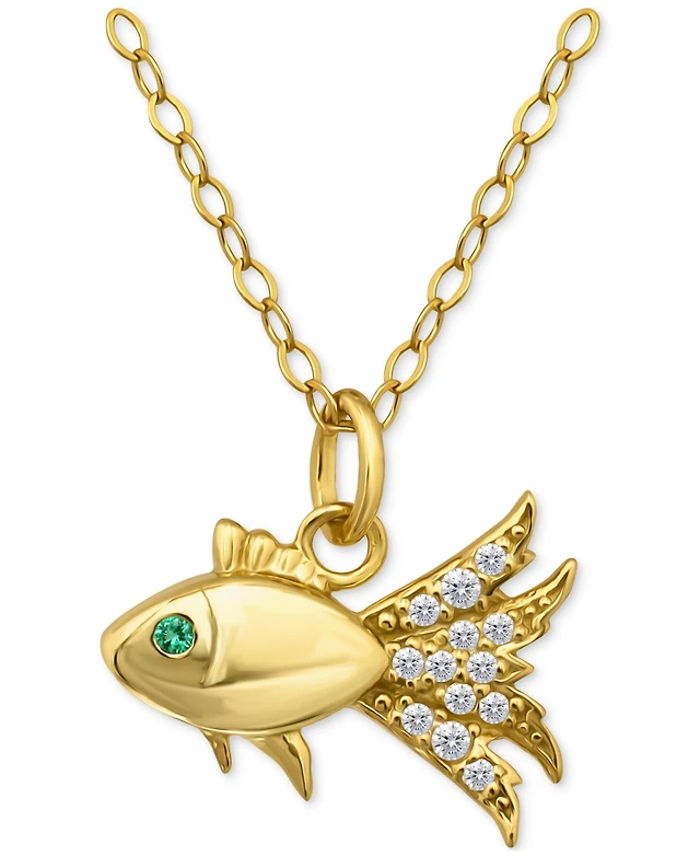 Giani Bernini Lab-Created Green Quartz & Cubic Zirconia Fish Pendant Necklace 18k Gold Over Sterling Silver, 16" + 2" extender, Exclusively at Macy