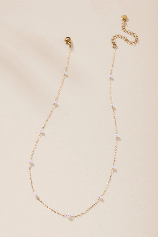 Gold Tone Milky Multirow Necklace